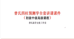 资料名称:曾氏四柱八字初中高级课程,资料包含pdf文档、视频等类型文件,希望对您学习四柱八字有所帮助。
